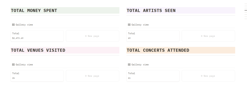 The Concert Tracker is a simple yet powerful way to track your concert adventures in Notion.